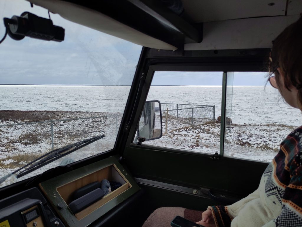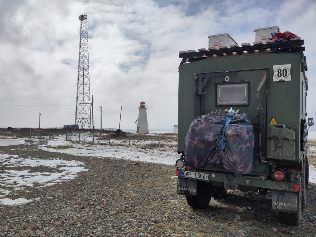 Auch wenn es echt ein Gegurke über schlechte Straßen hierher ist, kamen hier gerade zwei ältere Menschen an und haben ein Selfie mit dem Leuchtturm gemacht. Irgendwie knuffig und warum auch nicht. Uns gefällt das Bild mit dem Volvo besser. Für diese Nacht sind hier -13°C angesagt, unser Thermometer hat -11°C gemessen. Etwas sehr frisch für Frühling. Unsere Heizung läuft an, wenn es im Fahrzeug unter 7°C kalt wird, weniger wegen uns sondern wegen der Wasserleitungen. Wir sind für sowas ausgerüstet, entsprechend sind die Minusgrade kein wirkliches Problem, bloß raus aus dem Auto will man dann nicht. Die Abgase der Heizung haben auch noch unseren Siphon kurzzeitig aufgetaut, entsprechend ist das Wasser aus der Spüle auch endlich abgelaufen. Update: Ich kann berichten er ist wieder eingefroren. Nicht mal die Sonne des Tages hat gereicht den frei zu halten und wir haben das natürlich direkt wieder vergessen. Es steht also wieder Wasser in der Spüle, immerhin diesmal weniger.