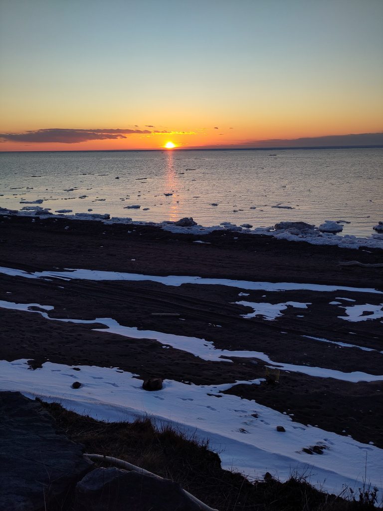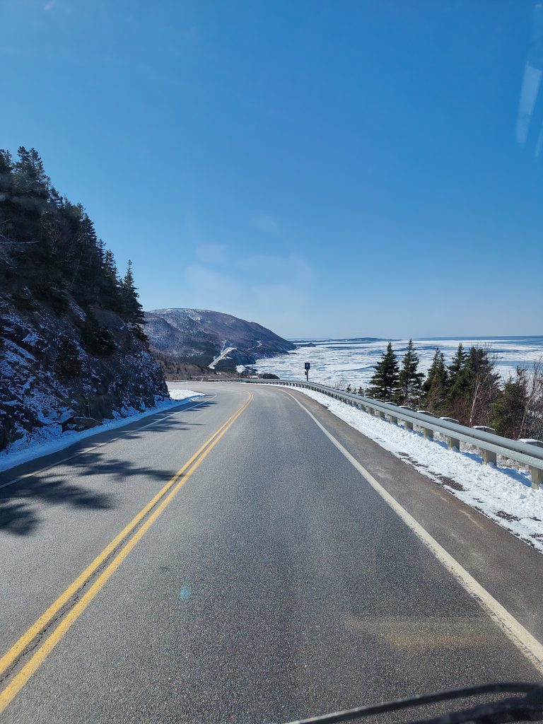Weiter ging es Richtung Cape Breton Nationalpark, wo wir morgen eine weitere Wanderung machen wollen, wenn der Schnee das zulässt. “Aber erst Morgen” hat eine weise Frau mal gesagt und deswegen haben wir uns mal wieder einen Übernachtungsplatz mit Meerblick gesucht. Das Meer ist hier zu einer Eisschollenlandschaft erstarrt, was wir leider nicht zufriedenstellend auf den Bildern einfangen können. Deswegen nutzen wir das langsam schwindende Sonnenlicht und genießen einfach den Anblick.