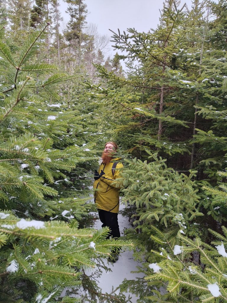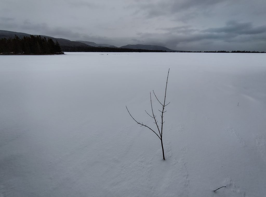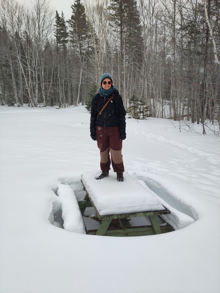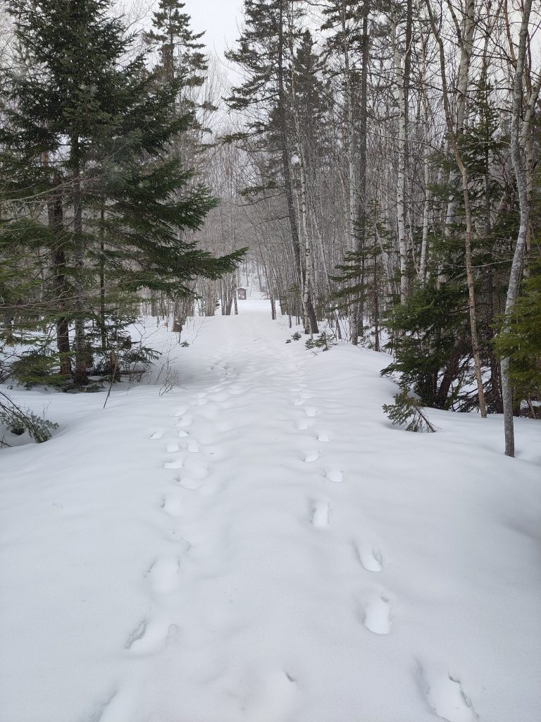 Nach kurzer Pause geht es weiter auf dem Rundweg, wobei “Weg” teilweise ein großer Begriff ist. Umgefallene Bäume lassen uns neue Wege suchen und zwischen den Tannen hindurch hoffen wir einfach Mal, dass wir immer noch auf dem richtigen Weg sind. Uns über und durch die Schneewehen kämpfend lernen wir auch, dass man besser Abstand zu den Bäumen, bzw. Baumstämmen hält, damit man nicht auf einmal absackt. Der Weg führt uns vorbei am MacDonalds Big Pond. Zu sehen ist eine große weiße baumfreie Fläche. Wo das Ufer beginnt? Keine Ahnung. Alles in allem ist es aber mal wieder ein schöner Trail.