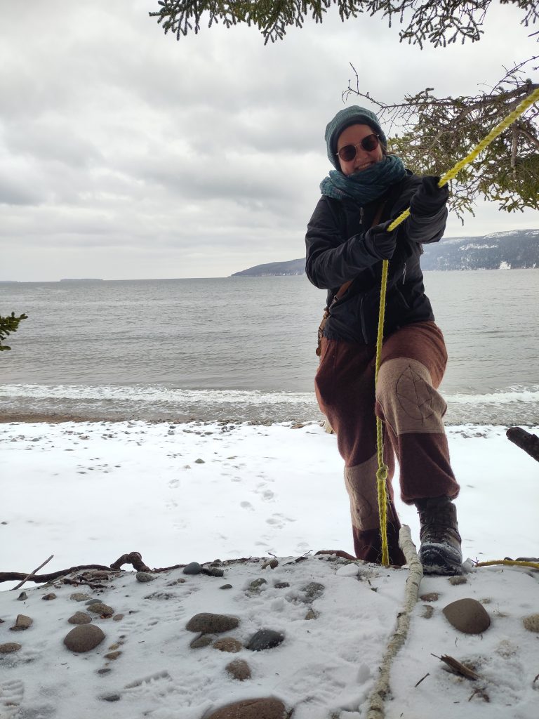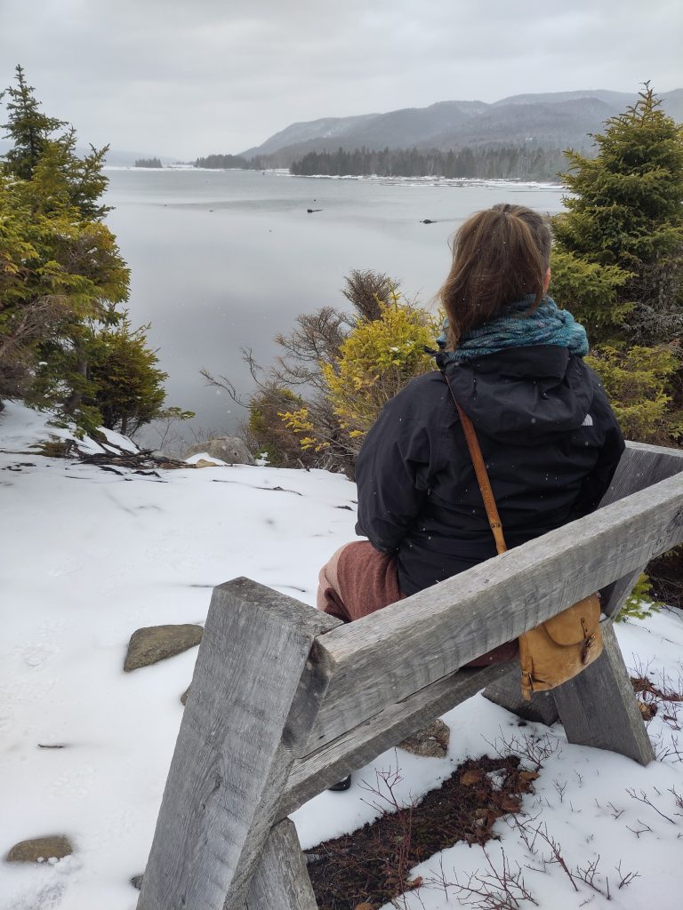 Der Red Island Trail ist ca. 3 km lang, fühlt sich aber eher an wie 6 oder 10 km, denn wir stapfen durch tiefen gefrorenen Schnee und sacken immer wieder ein. Auch hier sehen wir immer wieder kleine Haufen mit Resten von Tannenzapfen – Essensreste der Eichhörchnen. Ab und zu hören wir sie auch, ein bis zwei zeigen sich zwischendurch sogar. Der anstrengende Weg belohnt uns mit einem schönen Blick aufs Meer mit schneeverhangenen Bergen im Hintergrund. Leider liegen hier auch viel Fischereiausrüstung wie zum Beispiel ganze Hummerfangkästen und Netzteile, die überall an der Küste angespühlt werden. Manchmal werden die Dinge zumindest vom Meer weg gezogen,sodass sie nicht wieder weggeschwemmt werden. Allerdings bilden die stabilen Netze und Seile auch für Landtiere eine tödliche Gefahr. Man müsst den Müll also komplett aus der Natur entfernen, was aber bei den Mengen und dem Gewicht der Körbe für Spaziergänger unmöglich ist. Dafür müsste die Industrie selber verantwortlich sein, über die negativen Aspkete der Fischerei redet man hier vermutlich nicht so gerne.